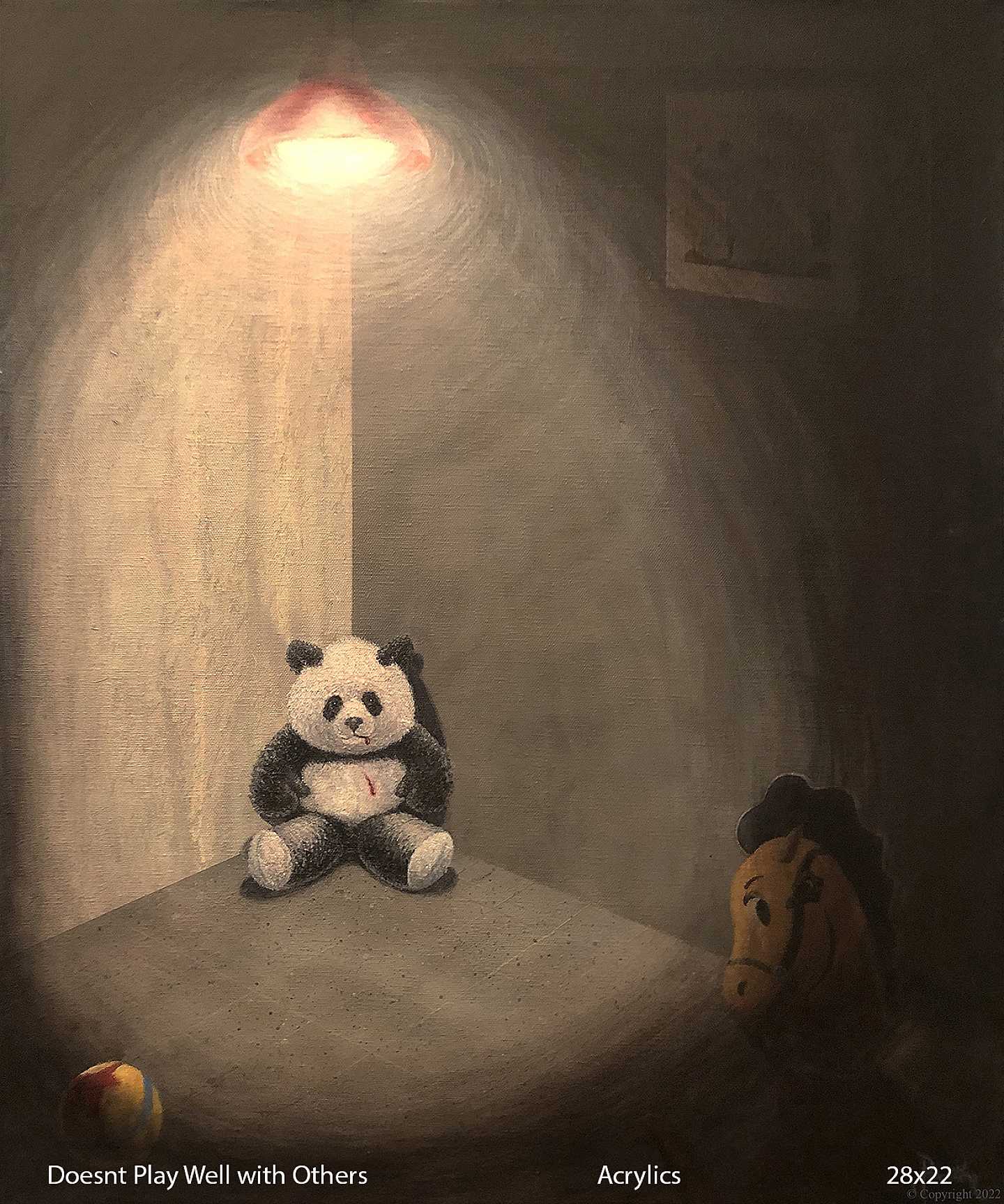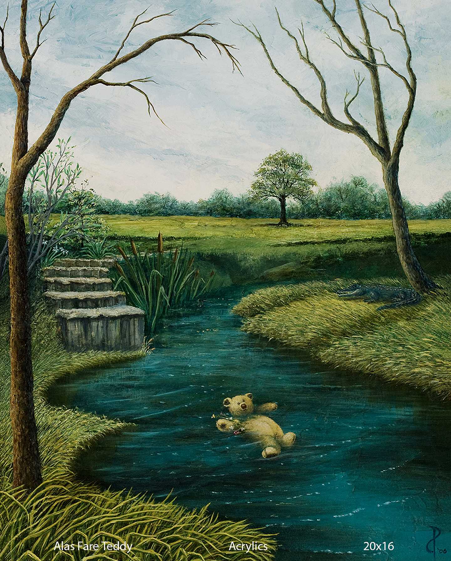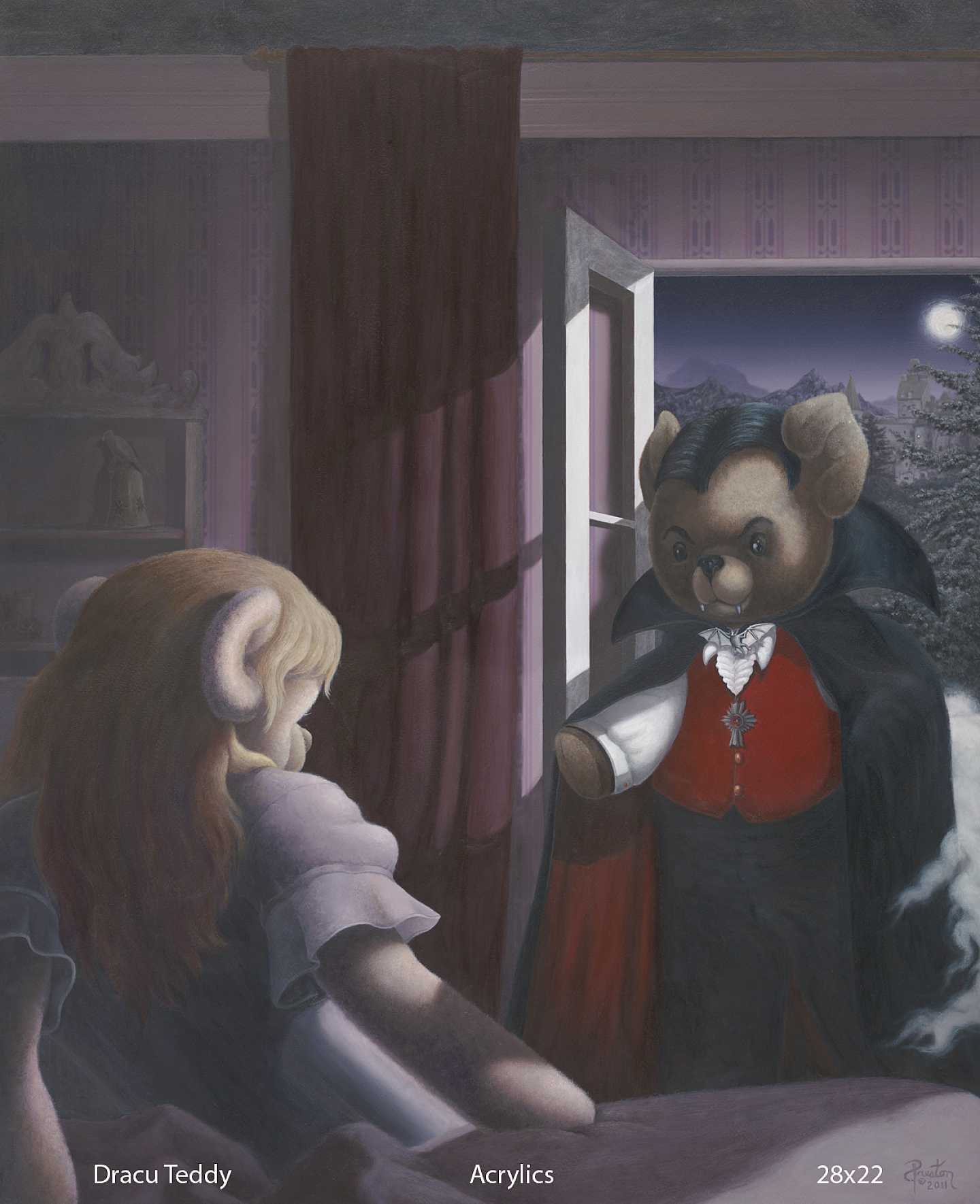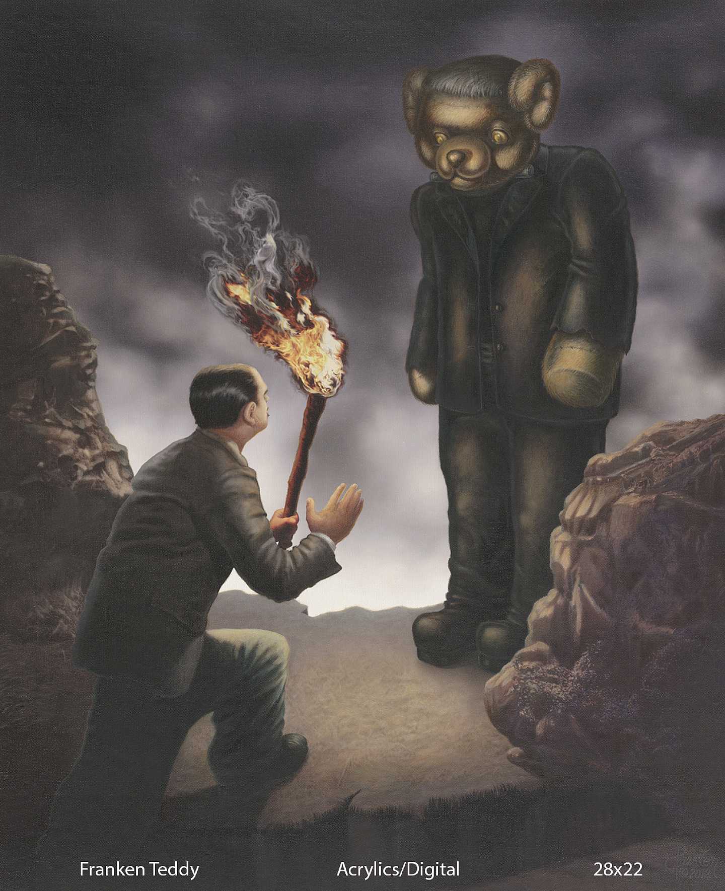 The nature of my work is that through the use of varied imagery, classical & digital painting techniques & sometimes humor, I often create a visual commentary on topical societal issues and encourage the viewer to contemplate the meanings and symbols in my imagery. I’ve worked with drug addicts, the homeless, victims of sexual abuse, young people who have been incarcerated, and know people in the porn industry so I have definitely seen some of the seedier side of life. I’ve seen how people can make a bad decision and get trapped in that decision. They are unable to figure out how to get out of the situation in which they find themselves. With that in mind, the nature of my work in my "Twisted Teddys" series utilizes an iconic image of childhood innocence, the teddy bear, to address social issues that are relevant and that affect the human race on a physical and spiritual level. Also, the images are social commentary and show how that childhood innocence can be warped and damaged by societal pressures and influences. At other times, my paintings are inspired by my Native American roots (Choctaw) and my spiritual quest with studies in Jungian symbolism. In either case, I hope the viewer is inspired to be more aware of their global connections to each other, to nature & to take personal responsibility for effecting positive change in society. While some of my landscapes may seem more representational, there is always a spiritual energy that emanates from them and my allegorical images breathe an almost mystical “ah-ha” as I reveal something of myself in the painting process. I create my fantasy pieces to delight & entertain, touching that inner child that is within each of us. I mostly use acrylics, digital or mixed media to create my images.