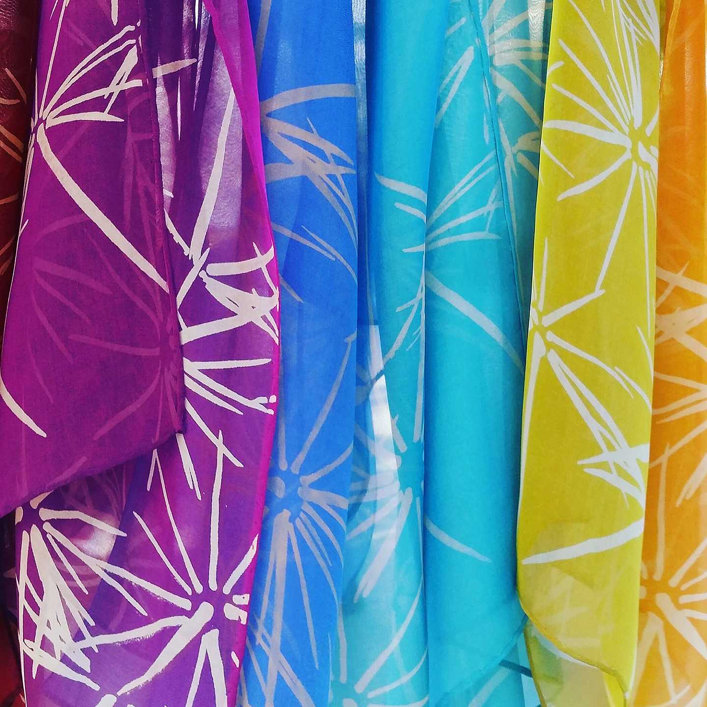 In college I was a potter. I loved the tactile quality of mud squishing through my fingers. Most of all, I loved creating surfaces on the clay that reminded me of decay. I put color on, then scratched it off. I scraped up the edges. I made things irregular, refined yet somehow gritty. I wanted the walls as thin as I could get them and the surface as rough as an ancient relic. At the same time I was taking all kinds of fibers classes, weaving, printing, dying. I loved the processes but fiber seemed just a little too clean. Cut to post college life where having a potters wheel in the spare bedroom of an apartment just won't work. But dying in the the kitchen sink will. And, a print table? No problem. Then came the fabric. I fell in love with the silk. The buttery soft texture of sueded charmeuse and the light as clouds softness of chiffon captured me. I couldn't put it down. I wanted to do the same thing to it as I did with clay, create balance between grit and refinement. Some of my patterns come from photos I've taken of urban decay. Whether it be worn texture on the floor, peeling plaster at a subway stop, a pile of discarded hardware or tread upon leaves, I love it. Other patterns come from the beautiful, but minute details. It is beauty that is so easily overlooked that I feel I must make large. Hidden gems have always intrigued me. Pattern is everywhere we look, but is often overlooked in our rush to finish each day. I love taking ordinary elements of everyday life and making them extraordinary. I screen print with fiber reactive dyes, discharge techniques and also do some occasional hand dying. I love every little bit of the process, from developing the patterns to exposing the screens, to the seemingly endless pinning, printing and yes, even the ironing. It's a meditative process. It keeps me calm, happy and fulfilled.