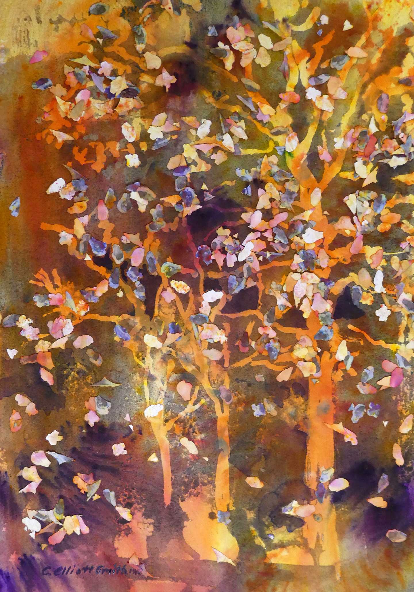 Materials used to create my art include transparent watercolor, watercolor paper, watercolor pencils, watercolor crayons and sometimes opaque watercolor. My process is usually direct painting on dry or wet paper depending on what effect I want to create. And I also have begun painting watercolor on wood using watercolor ground.