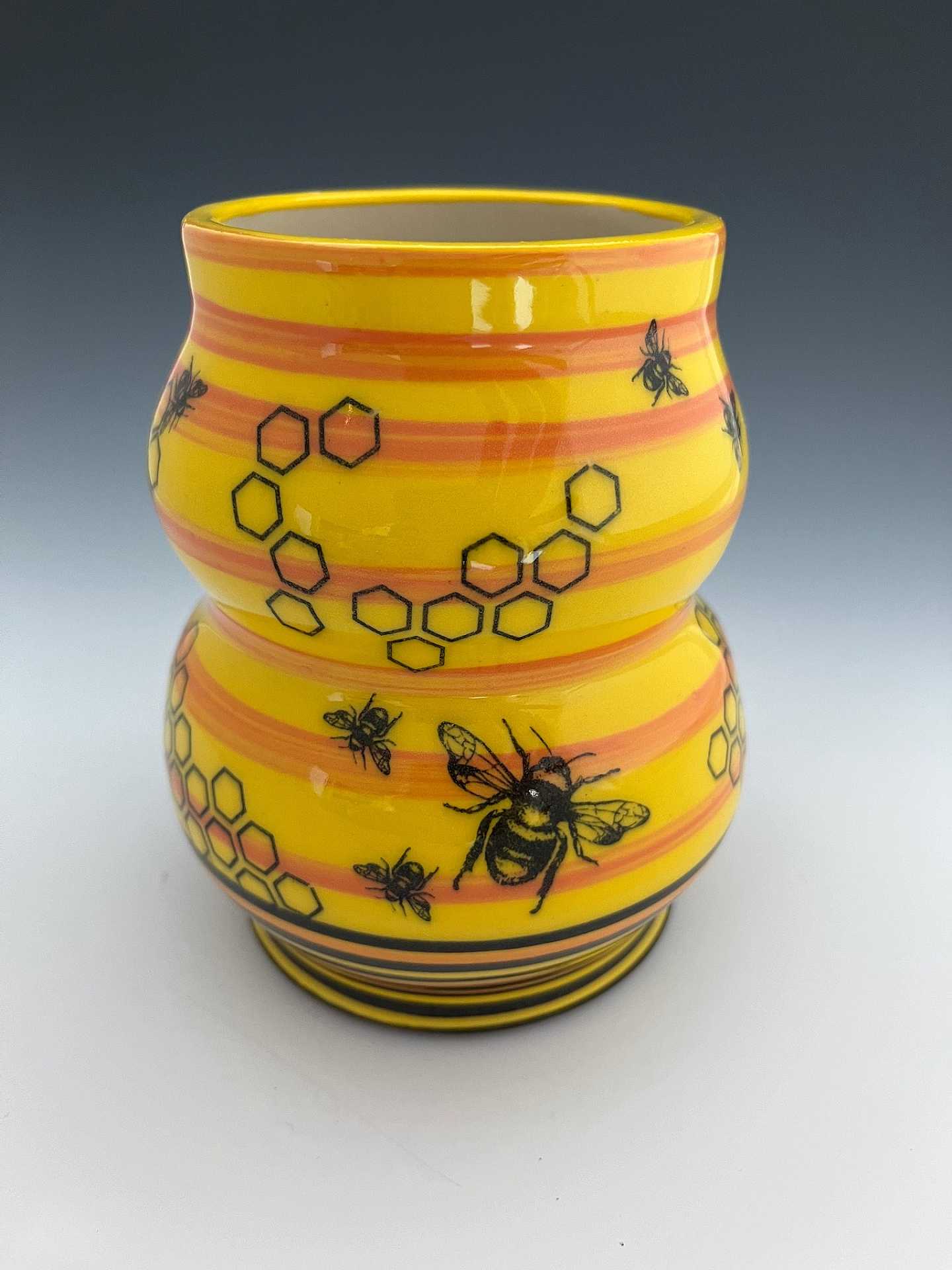 I am forever excited by the tactility of clay. It's a great feeling when someone finds a piece I've worked on and it fits their grip just right, and then a mug I've made gets to be part of their morning routine.. My handbuilt and thrown work serve to emphasize tactility, the construction process, repetition, angle and line. Each piece is one of a kind, and fired in an electric kiln to cone 5. All of the ceramics are dishwasher, microwave and food safe, and are meant for use in the home.