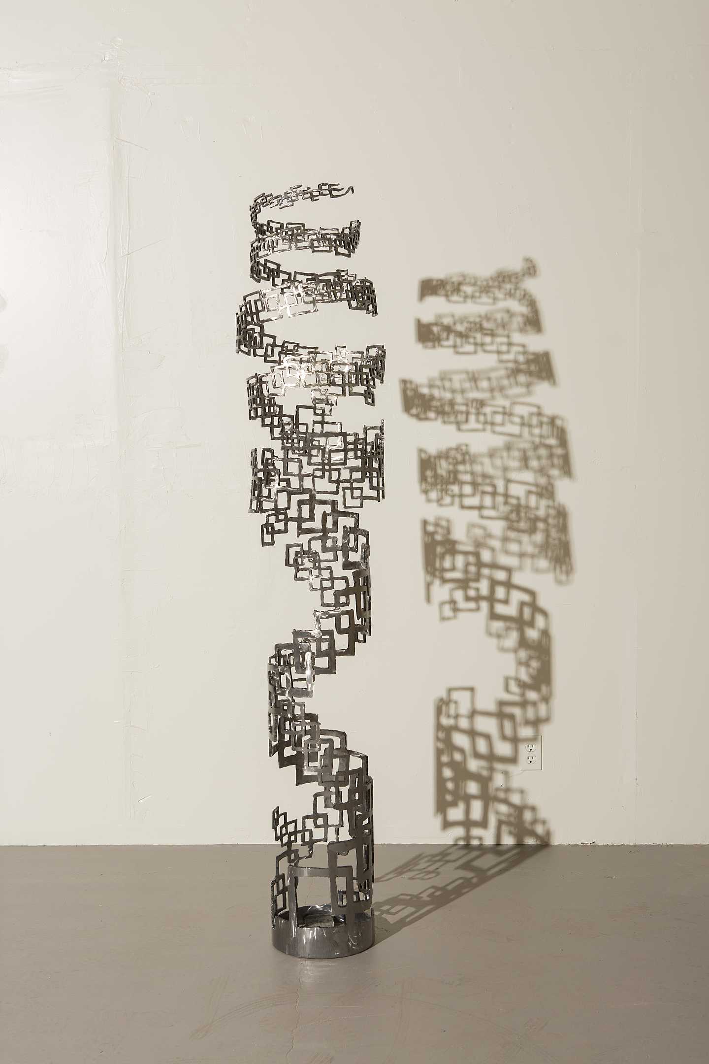 I create abstract sculpture exclusively from steel pipe. I focus on creating light, delicate free form shapes which capture the essence of movement and are visually engaging. Many of the finished forms spring to life when gently touched and most cast interesting shadows when they are lit. Smooth lines encourage the viewer to move around the work. The archetypal spiral shape resonates through most of my work.
