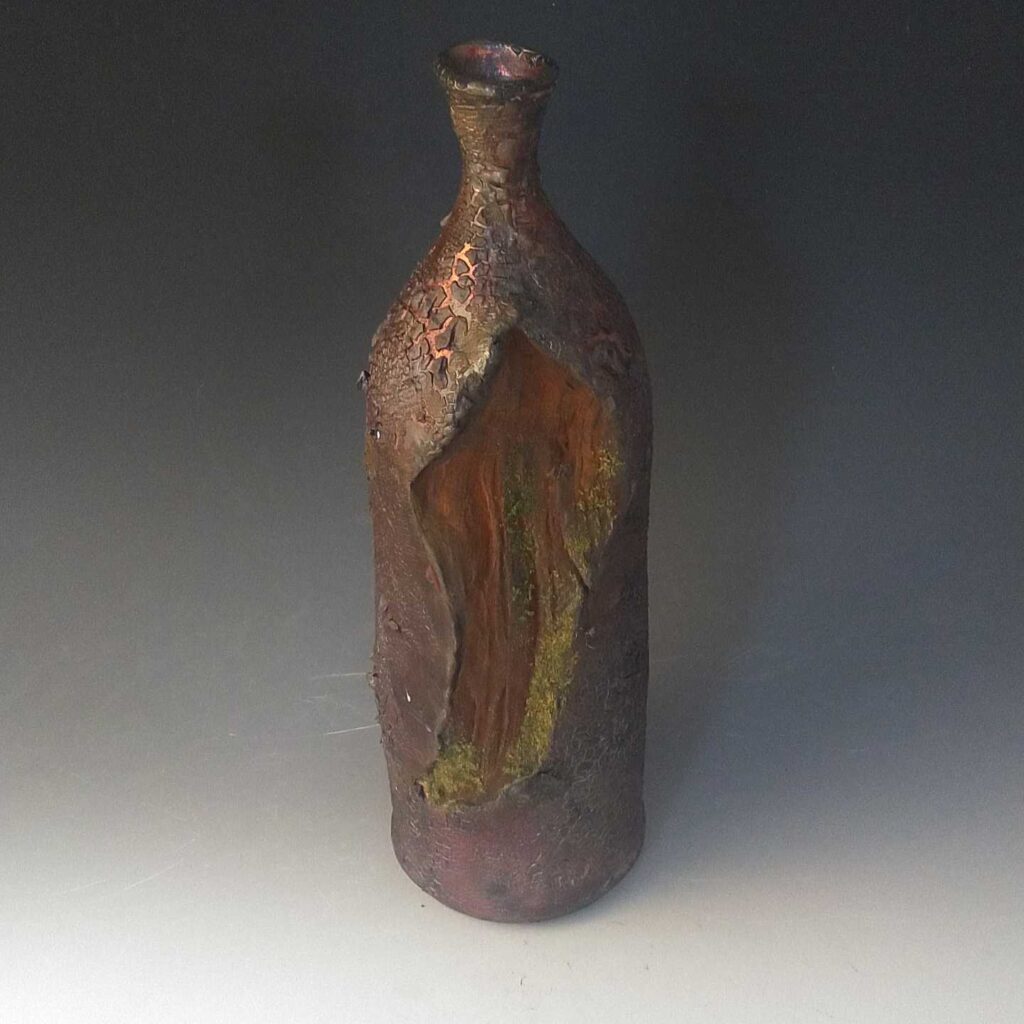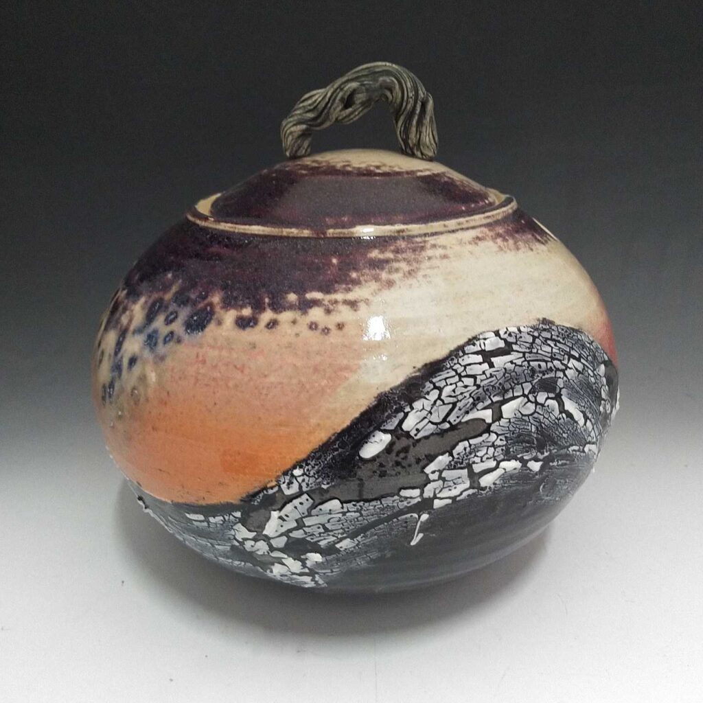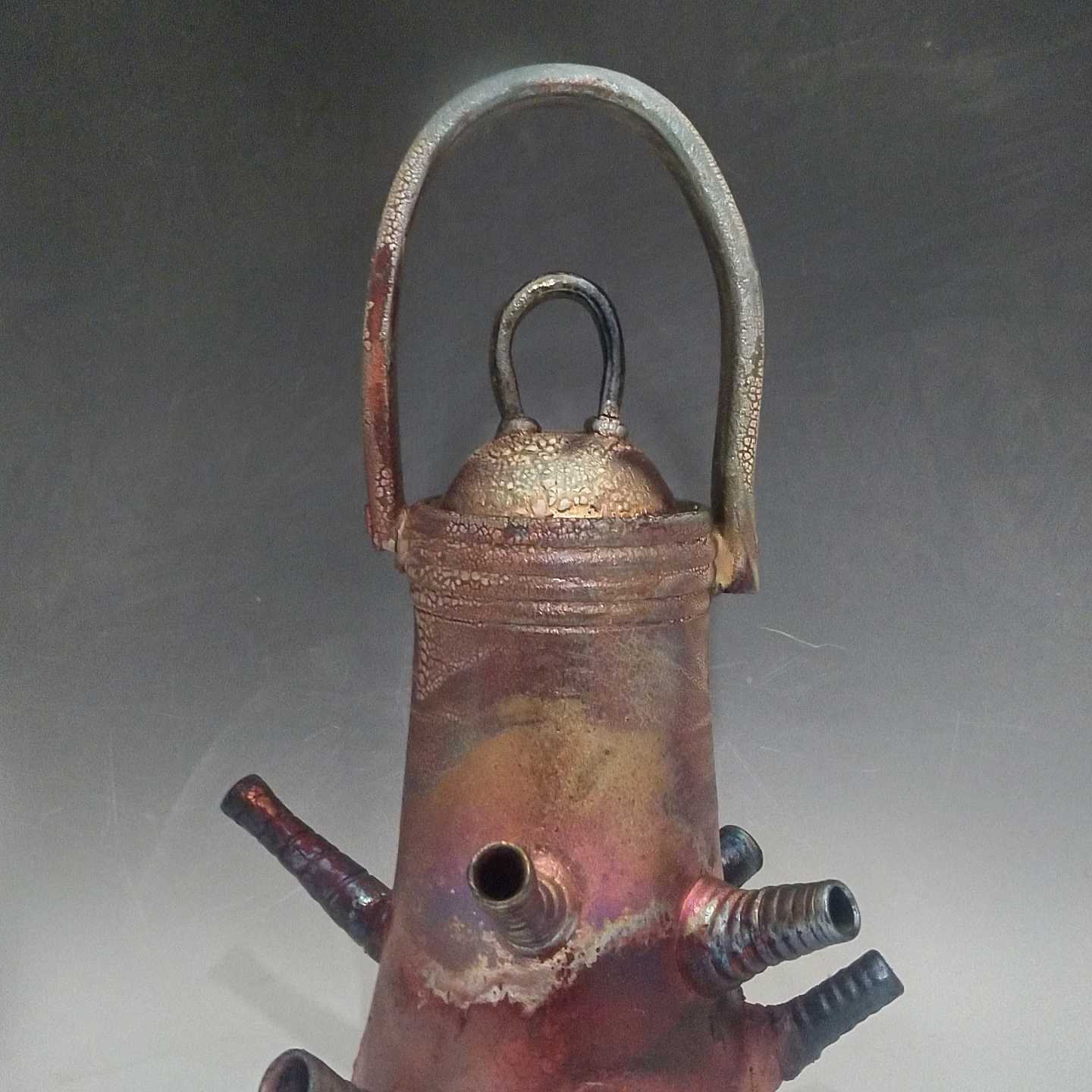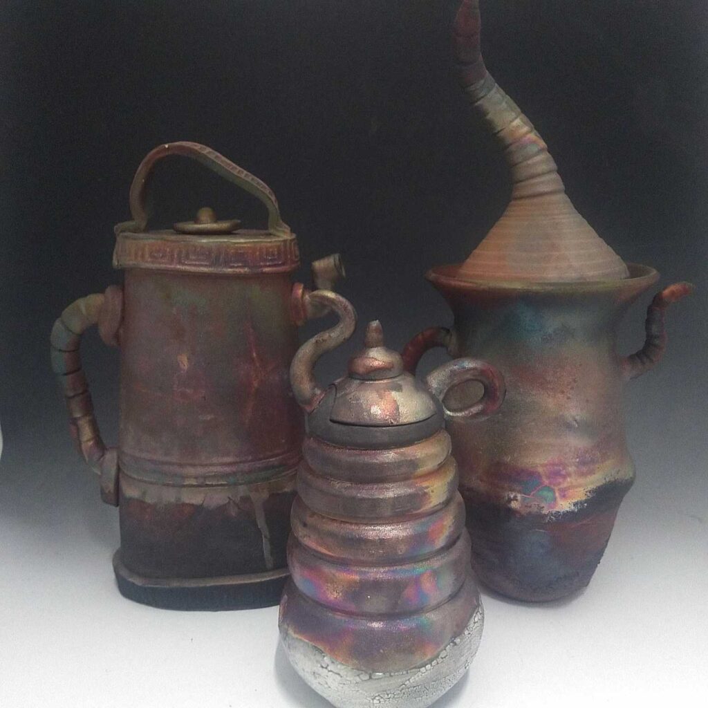 I am interested in texture and form and what these two can tell us of places, contexts. Some of my work evokes the harsh beauty of the Great Basin like my Sculptapots, Geodes and Figurative works while others are more relevant to urban, industrial settings such as my Tinmen and Tinbots. I specialize in non-functional, wheel and slab formed sculptures in raku, soda, and saggar firing. I also offer functional ware for commission such as dinner sets, ichiban vases, urns, and more.