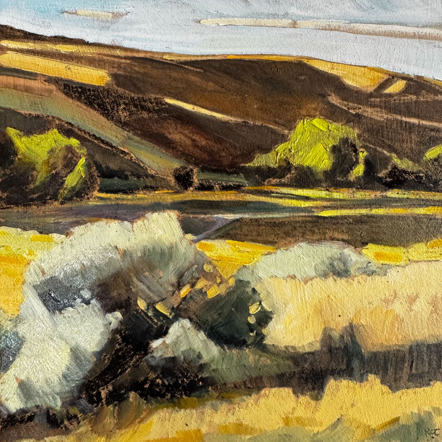 Rachel Teannalach is a contemporary landscape painter whose work is characterized by bold, gestural brushstrokes and her ability to evoke the emotional quality of the places she paints. She is known for her "tinyExpanse" daily paintings as well as large scale landscapes. Teannalach works primarily in oil paint, incorporating other media such as charcoal and oil pastels. Teannalach believes in art's ability to connect people and causes they believe in. For over a decade, Teannalach has collaborated with local and regional conservation organizations, supporting their efforts to preserve the lands she loves to paint. She also lends her work to support humanitarian and local arts organizations.